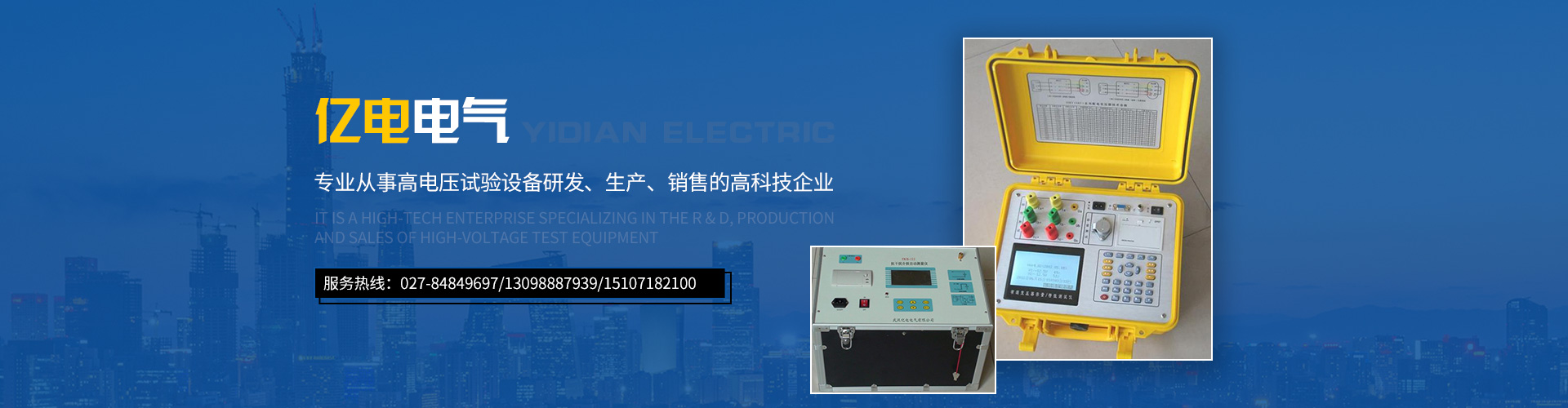武漢億電電氣有限公司是專(zhuān)業(yè)從事試驗(yàn)變壓器,變頻串聯(lián)諧振試驗(yàn)裝置,直流高壓發(fā)生器,變比組別測(cè)試儀,直流電阻測(cè)試儀等等高電壓試驗(yàn)設(shè)備研發(fā)、生產(chǎn)、銷(xiāo)售的高科技企業(yè)。